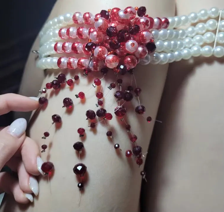 No puedo tener suficiente de este collar. El patrón de sangre roja con perlas es una elección atrevida pero hermosa. Lo usé para una fiesta de Halloween y todos seguían elogiando mi look. La calidad es fantástica y es sorprendentemente cómodo de llevar toda la noche. ¡Simplemente wow!